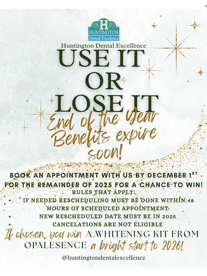 Huntington Dental Excellence provides a wide variety of dental services and procedures to address all of our patients' dental health needs. By combining quality patient care with up-to-date technology, we are able to treat patients of all ages in a comfortable and relaxing setting. Our website includes information on the following items: Dentist, Cosmetic Dentist, Family Dentist, General Dentist, Emergency Dentist, Implant Supported Dentures, Dentures, Dental Crowns, Same Day Crowns and more. Our Dentist and experienced team are trained to not only treat patients but to identify what caused the health concern in the first place. This comprehensive approach sets patients of Huntington Dental Excellence on the road to recovery and long term oral health.